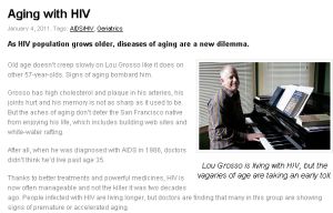 O intreaga generatie infectata cu HIV in anii 1980 si 1990 nu a avut posibilitatea de a imbatrani avand SIDA. Noile generatii de pacienti, inaintand in varsta si fara bani, sufera, in prezent, de tot mai multe probleme de sanatate cronice declansate de SIDA, scrie MEDIAFAX.Sa poti sa imbatranesti avand SIDA a fost un lucru care nu era posibil pentru o intreaga generatie, infectata in anii 1980 si 1990; SIDA aproape ca l-a ucis pe Lou Grosso, in urma cu 30 de ani. Insa acest american nu era pregatit pentru cel mai recent diagnostic ce i-a fost pus de medicul sau: el sufera acum de probleme cardiace. La varsta de 57 de ani, Lou sufera, totodata, de dureri la nivelul articulatiilor si de pierderi de memorie. Insa, dintre cele 14 pilule pe care trebuie sa le ia in fiecare zi, doar trei vizeaza aspectul seropozitiv.