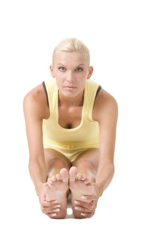 Tineti picioarele intinse, iar cu mainile va prindeti gleznele sau chiar calcaiele, daca reusiti, Apoi va trageti trunchiul in fata, incercand sa ajungeti cu fruntea la genunchi.