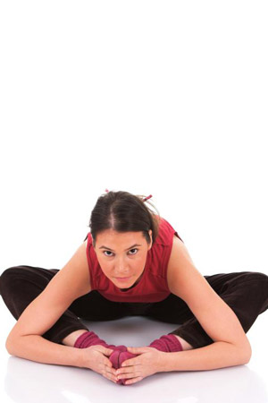 Exercitiul de mobilitate din imagine este unul premergator pentru a face sfoara, dar util pentru articulatia piciorului pe bazin. Tineti talpile lipite si cat mai apropiate de bazin. Apoi genunchii trebuie sa atinga podeaua. Daca nu reusiti, balansati genunchii in exercitii repetate pana ajungeti sa atingeti podeaua cu acestia. Apoi incercati sa va aplecati pana atingeti talpile cu trunchiul.