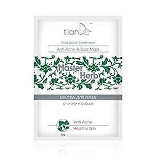 Masca curata eficient suprafata pielii, normalizeaza activitatea glandelor sebacee, inchide porii si previne aparitia acneei. Netezeste relieful pielii, controleaza PH-ul, minimizeaza influenta radicalilor liberi. Componentele active ale mastii indeparteaza edemul si roseata. Indeparteaza cosurile si reduce cicatricile rezultate in urma eruptiilor acneice. Folositi in combinatie cu alte produse Master Herb