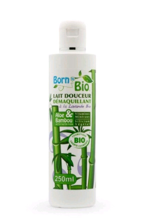 Laptele demanchiant Born to Bio este fabricat dintr-un complex vegetal unic pe baza de suc proaspat de aloe vera si pudra de bambus. Bogat in lavanda bio, vitamine, minerale si siliciu vegetal, laptele demachiant participa la eliminarea blanda a machiajului, impuritatilor si celulelor moarte hranind bariera cutanata. Fata este curatata, hranita si protejata.