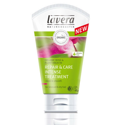 Acest produs din gama de ingrijire a parului LAVERA este un tratament natural intensiv pentru repararea parului degradat, uscat. Acesta contine extract pretios de trandafir de Damasc, ulei de avocado, keratina naturala, ulei de jojoba, ulei de macadamia, extract de piersica si pantenol care hranesc in profunzime firul de par si netezesc structura acestuia.