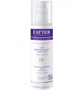 Laptele demachiant bio Caresse d'Herboriste de la Cattier este potivit pentru toate tipurile de ten, inclusiv pentru cel sensibil, indepartand orice fel de machiaj.