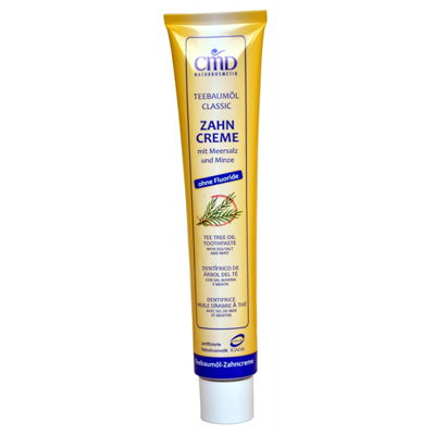 Pasta de dinti fara fluor cu ulei de TEA TREE curata dintii cu blandete, iar complexul de ingrediente active pe baza de ulei bio de tea tree, ulei bio de menta si ulei bio de smirna previne formarea cariilor, combate tartrul dentar si este un foarte eficient tratament in cazul gingiilor sensibile.