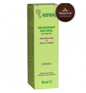 DEODORANTUL NATURAL - HOFIGAL pe baza de gemoderivate și uleiuri volatile distruge bacteriile si fungii, stagneaza in mod natural producerea de mirosuri neplacute ale corpului si asigura prospetime si naturalete minimum 24 ore, fara a afecta functionalitatea normala a pielii.