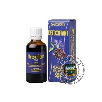 Detoxifiant de la dacia plant (50ml) pe baza de fructe de soc, este recomandat in constipatie, edeme, guta, acnee, psoriazis, dermatite, eczeme, intoxicatii cronice, in curele de slabire si de detoxifiere.