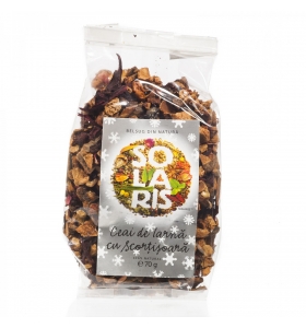 Ceai special de iarna cu gust de prune si scortisoara, aromat cu bucatele dulci de sfecla si flori de hibiscus.