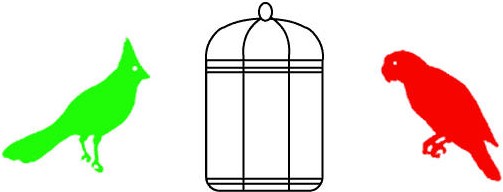 Daca priviti ochiul papagalului rosu timp de 30 de secunde si apoi duceti privirea pe colivie, veti observa o pasare de un albastru deschis. Daca priviti ochiul pasarii verde, veti vedea apoi pe colivie o pasare magenta...