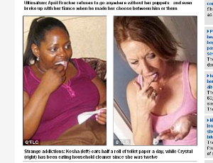Femeia care mananca jumatate de sul de hartie igienica pe ziPrintre dependentele ciudate se numara si nevoia unei femei de a manca jumatate de sul de hartie igienica zilnic si a alteia care mananca detergenti de la 12 ani..... Ciudat.... Nu?