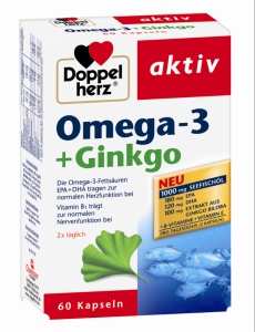 Produsul este recomandat in probleme de concetrare si memorie, efort intelectual intens, stres si efort psihic, membre reci si in prevenirea afectiunilor cardiovasculare. Capsulele de Doppleherz aktiv Omega 3 + Ginkgo contin o combinatie echilibrata de ulei de somon cu concentrat de Ginkgo, plus vitamine, pentru mentinerea unui nivel scazut al colesterolului si o “memorie de elefant”.