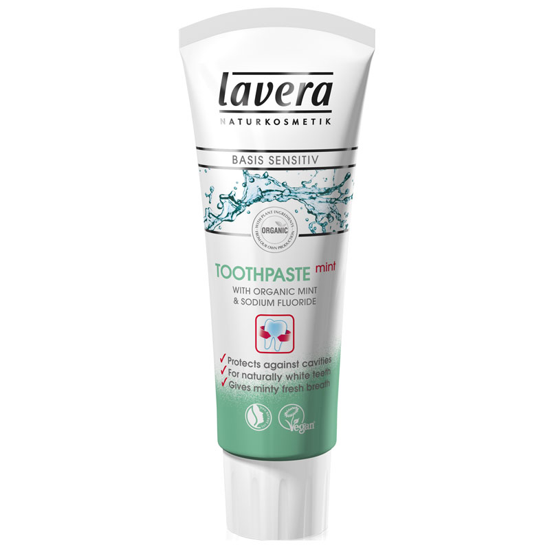 Pasta de dinti naturala de la LAVERA protejeaza dintii impotriva cariilor, a placii dentare, oferind in acelasi timp o respiratie proaspata datorita mixului de ingrediente: menta organica, arnica si echinaceea. Ajuta la calmarea gingiiilor sensibile.
